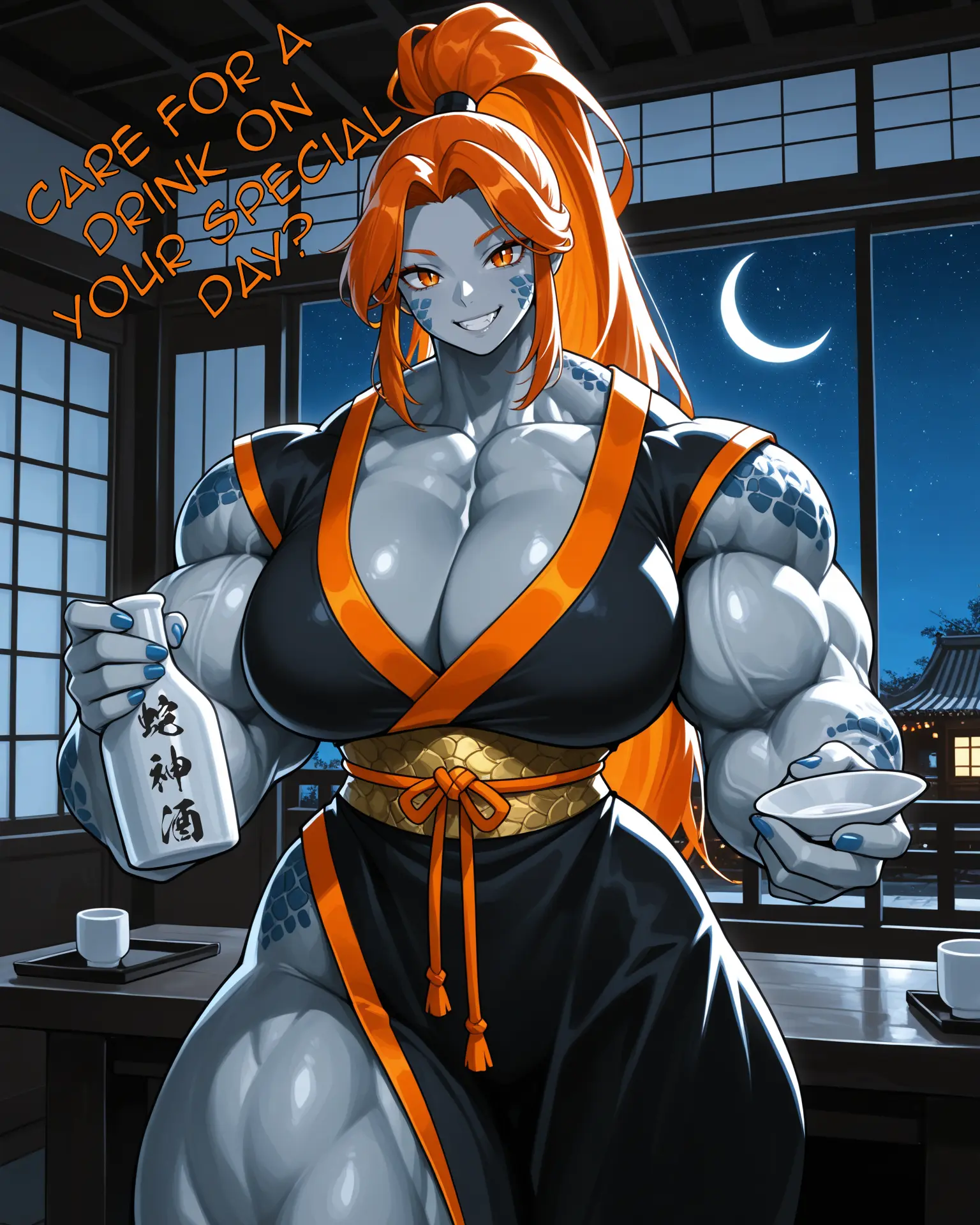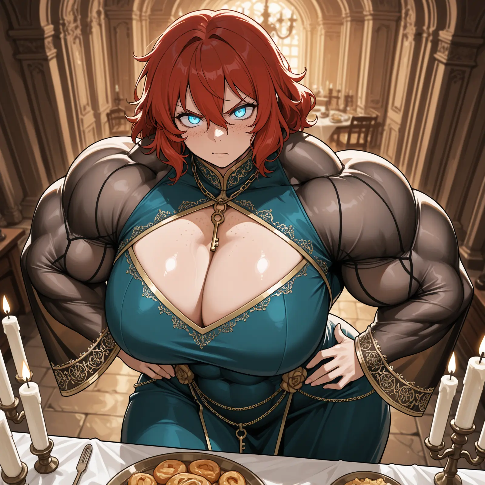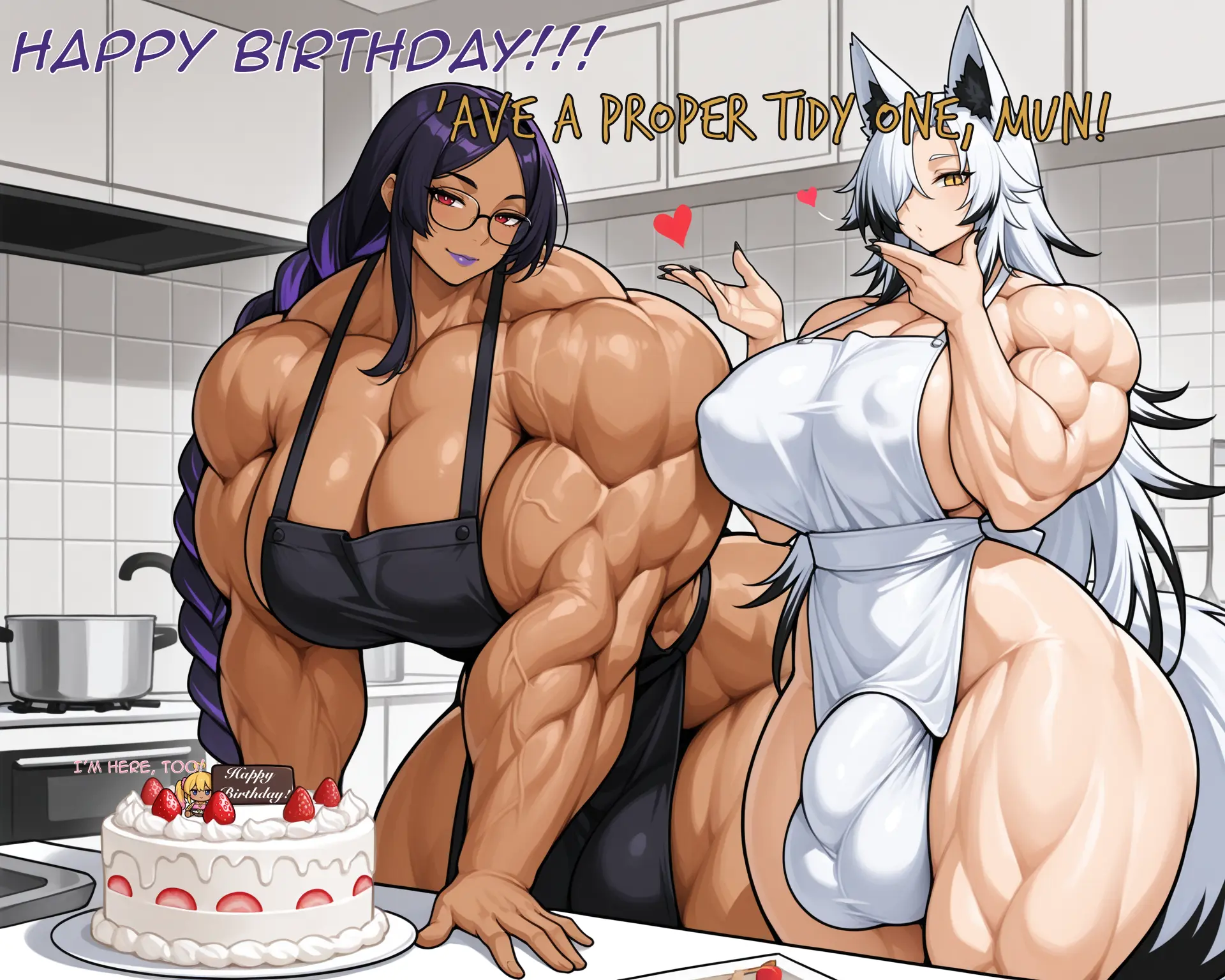 Rhia: “Right then, Rhia, don’t you dare start fantasizin’ about the girls… their massive boobs, them bulgin’ biceps, shredded abs… an’ Melly’s soft lips on me—WHAT did I just say?!”