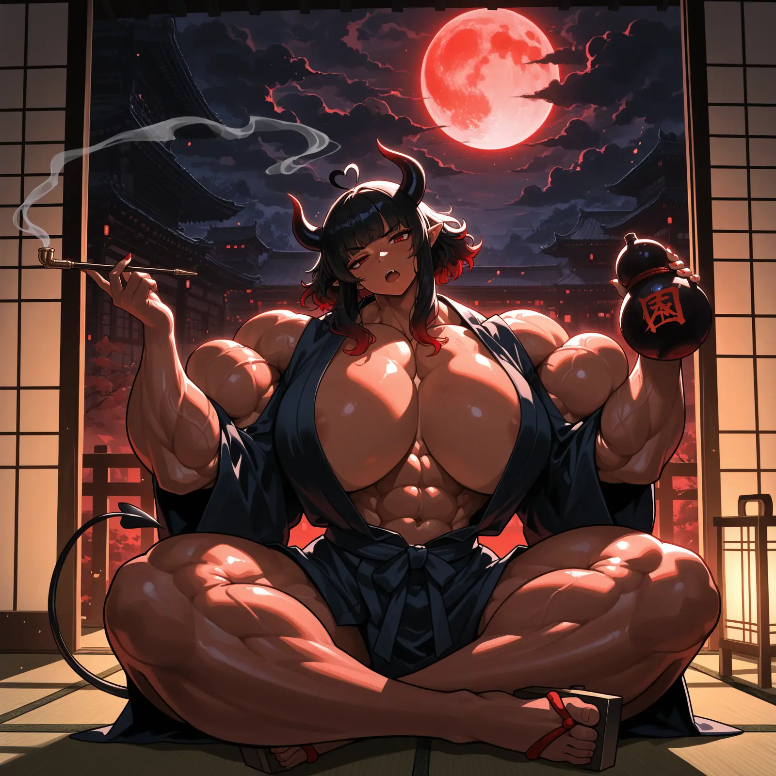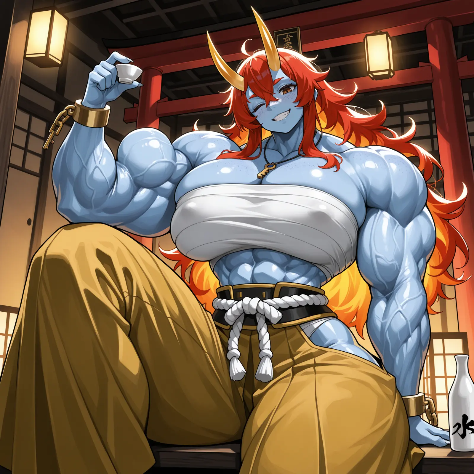 Azdael: “And what are you complaining about exactly, huh?! You got a sexy demon girl instead of an old man, and I didn’t even bring the other 99 with me! Now, be a good host and bring me some food, would you? Oh… and some sake, that thing’s empty!”