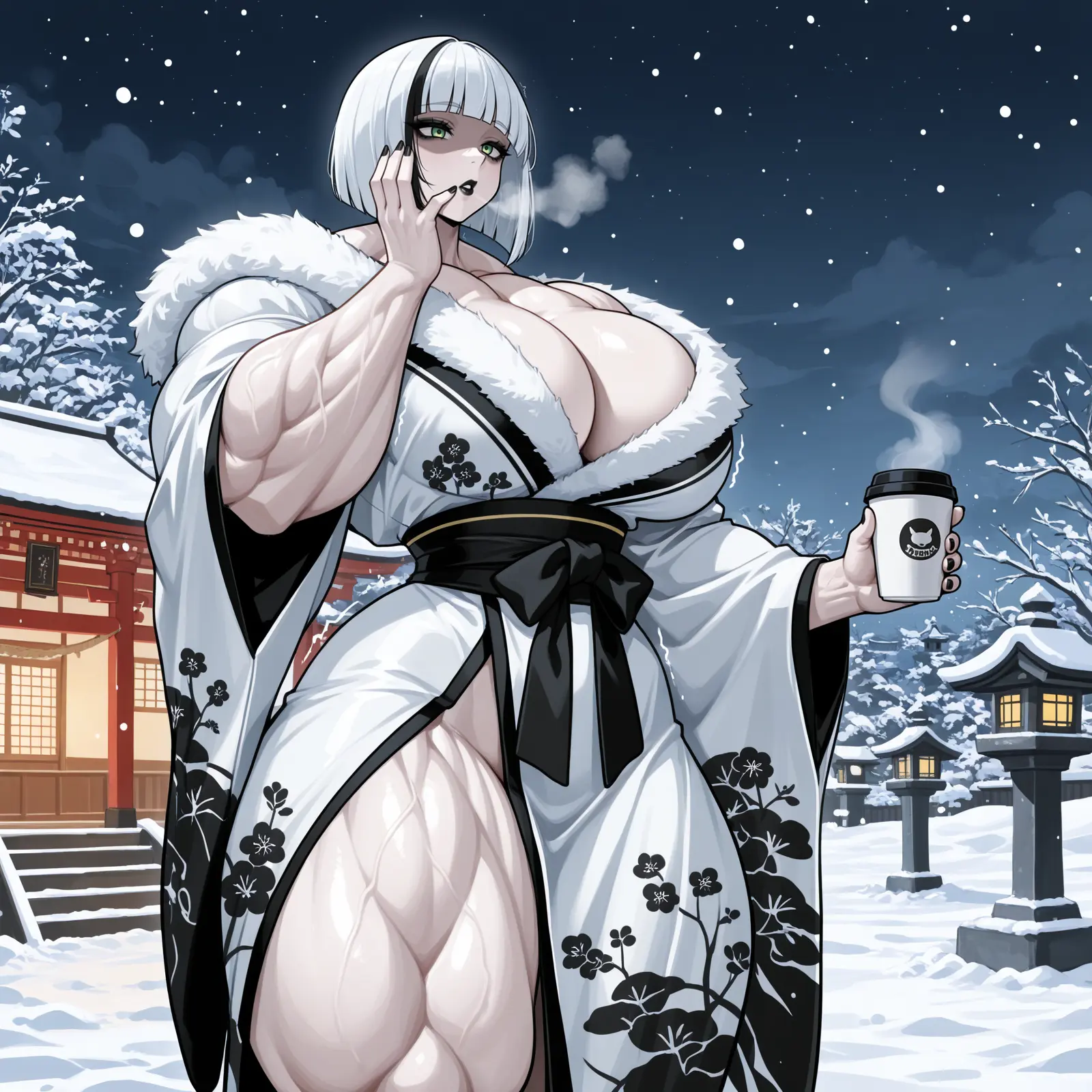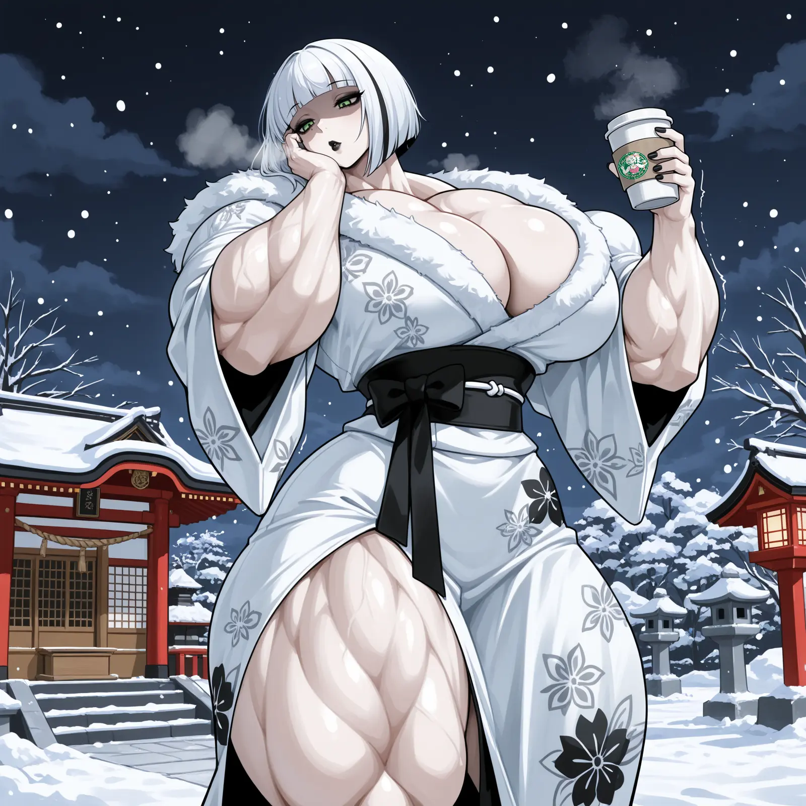 Melanie: “Ughhh… I love that dress, but bringing a snowstorm with me has its downsides… at least I have a nice, hot “Cup o’ Gyaru” special latte to keep me warm!”