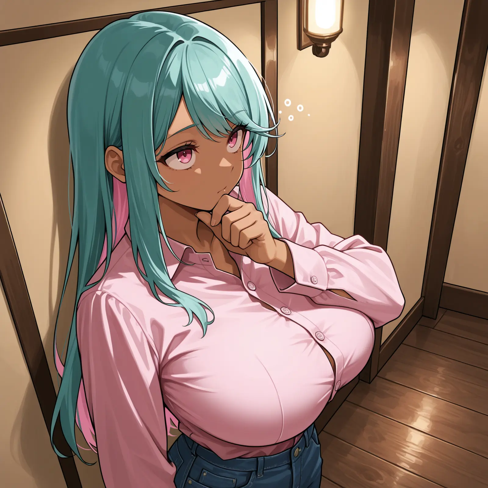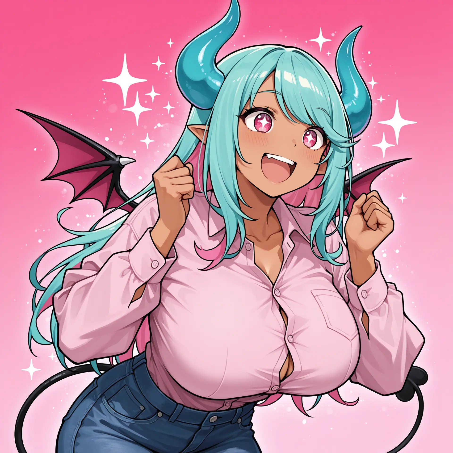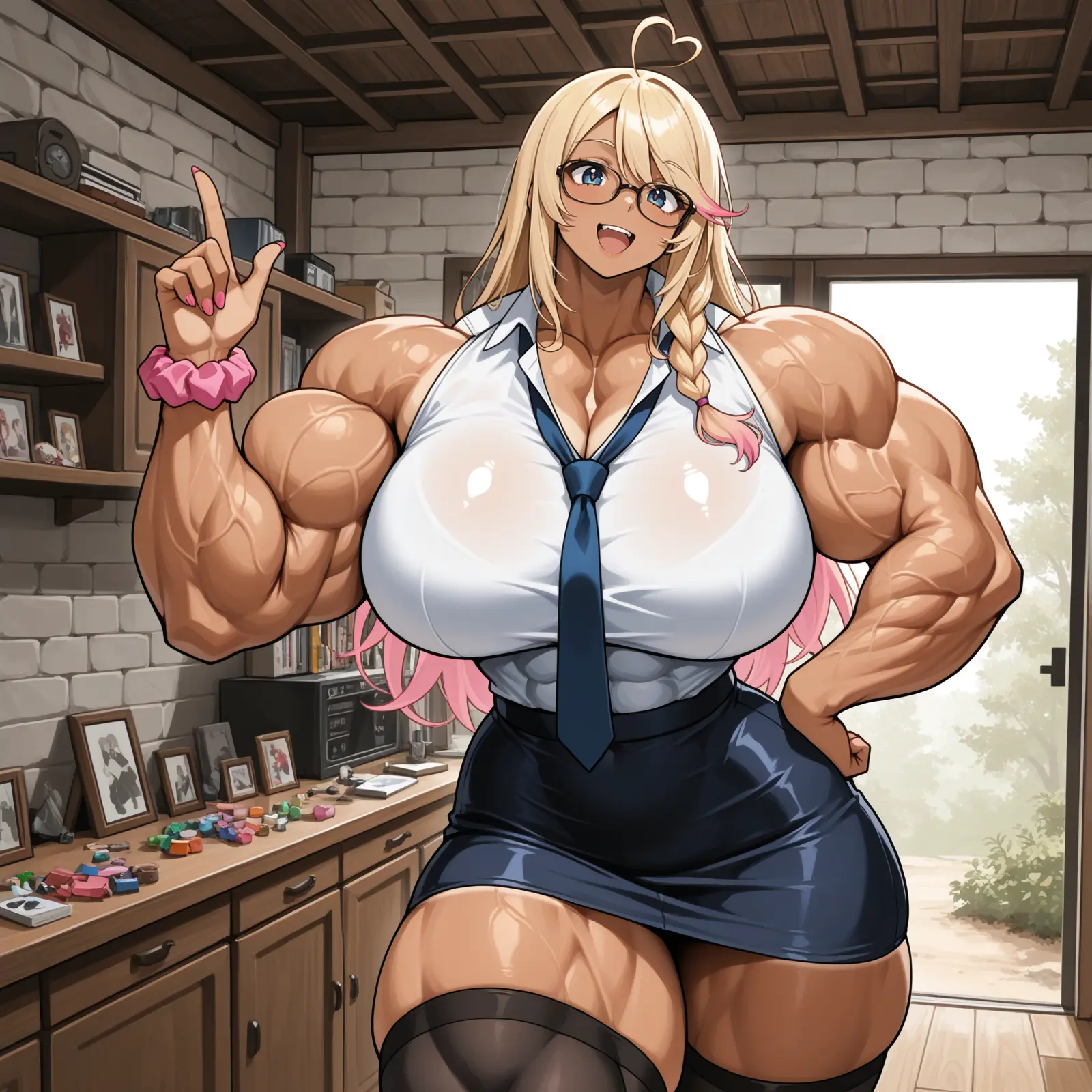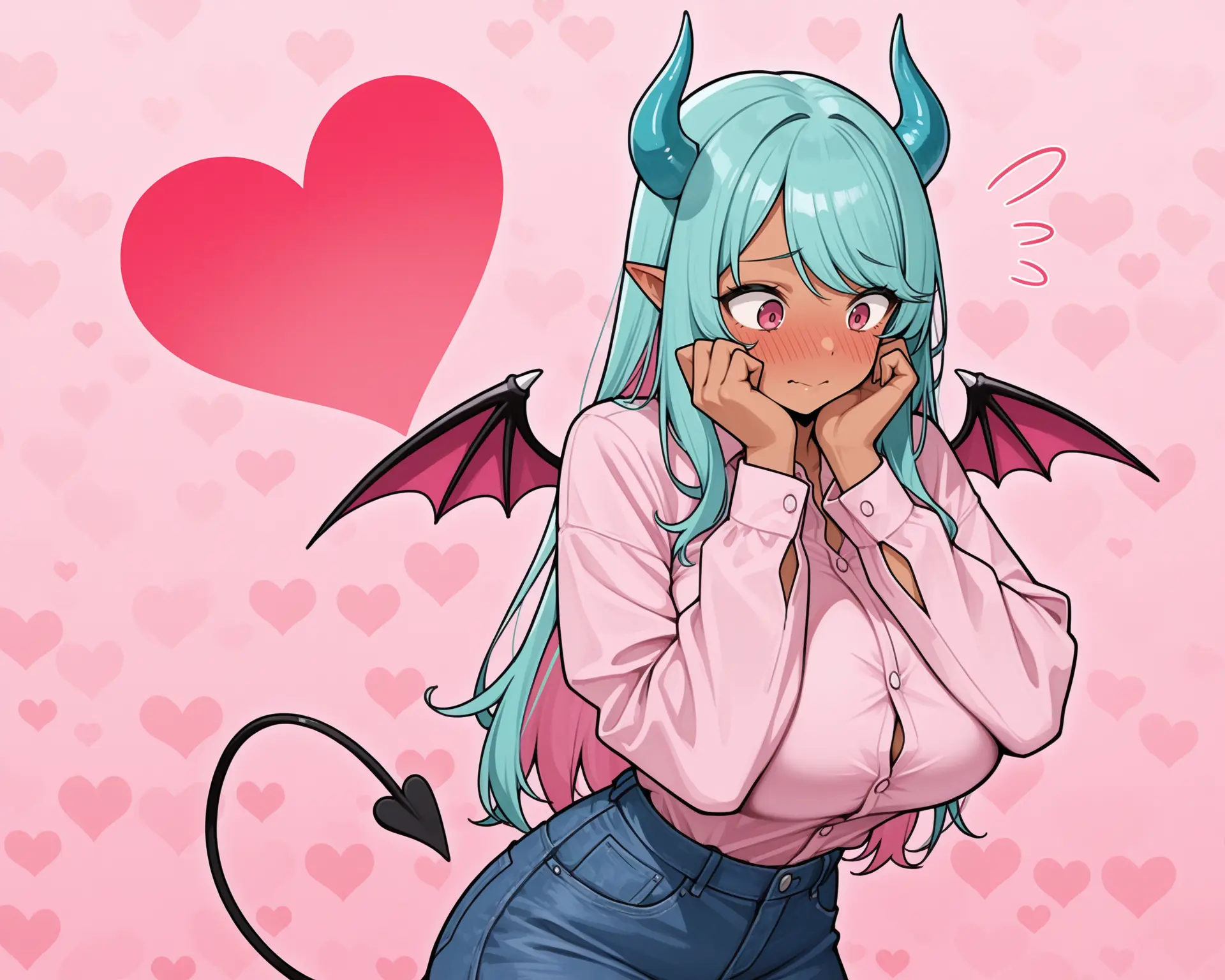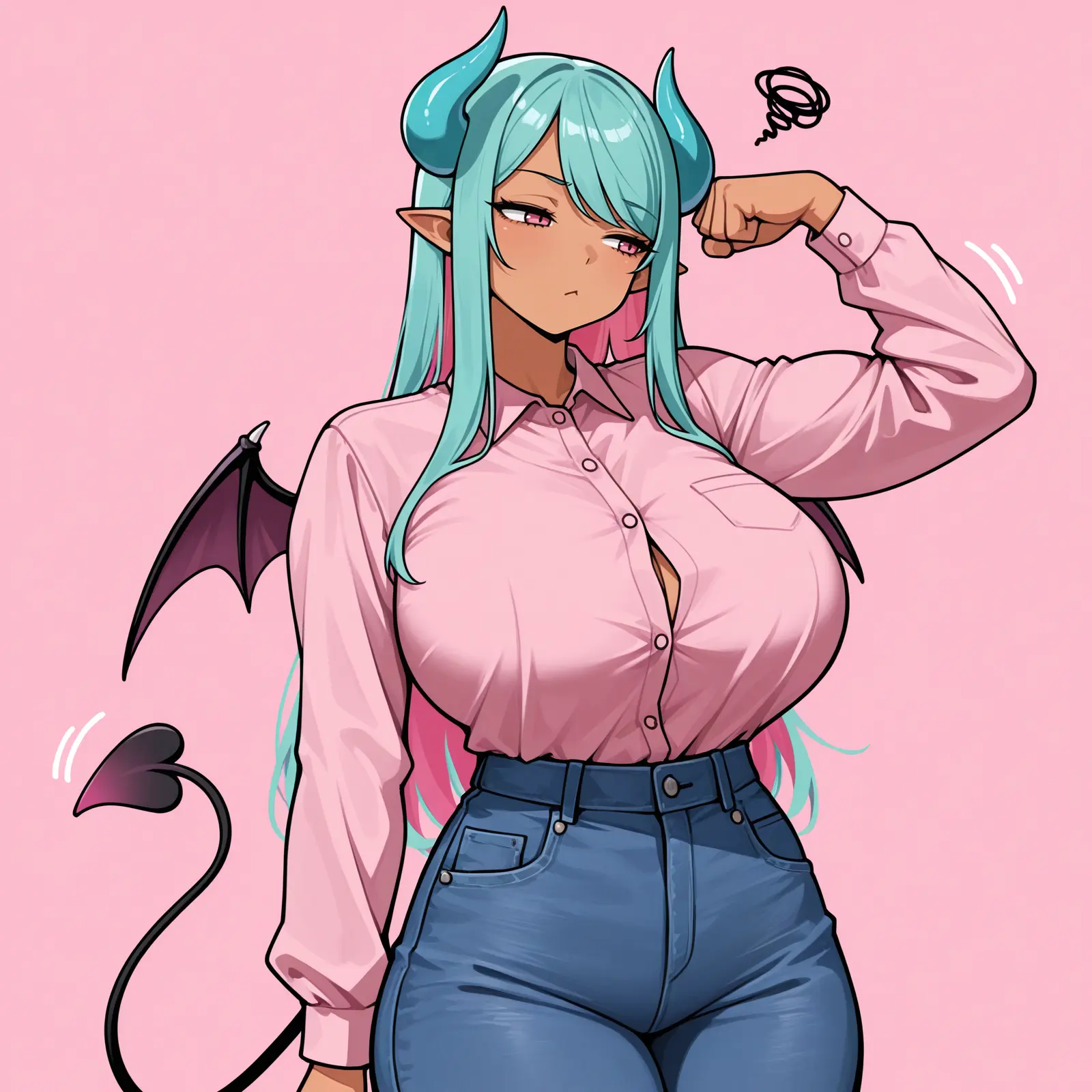 She’s big, but can kinda sort of hide her extra bits in baggy enough clothes and under a skirt. When she’s really excited, she’s not lagging behind Rhia in any capacity.