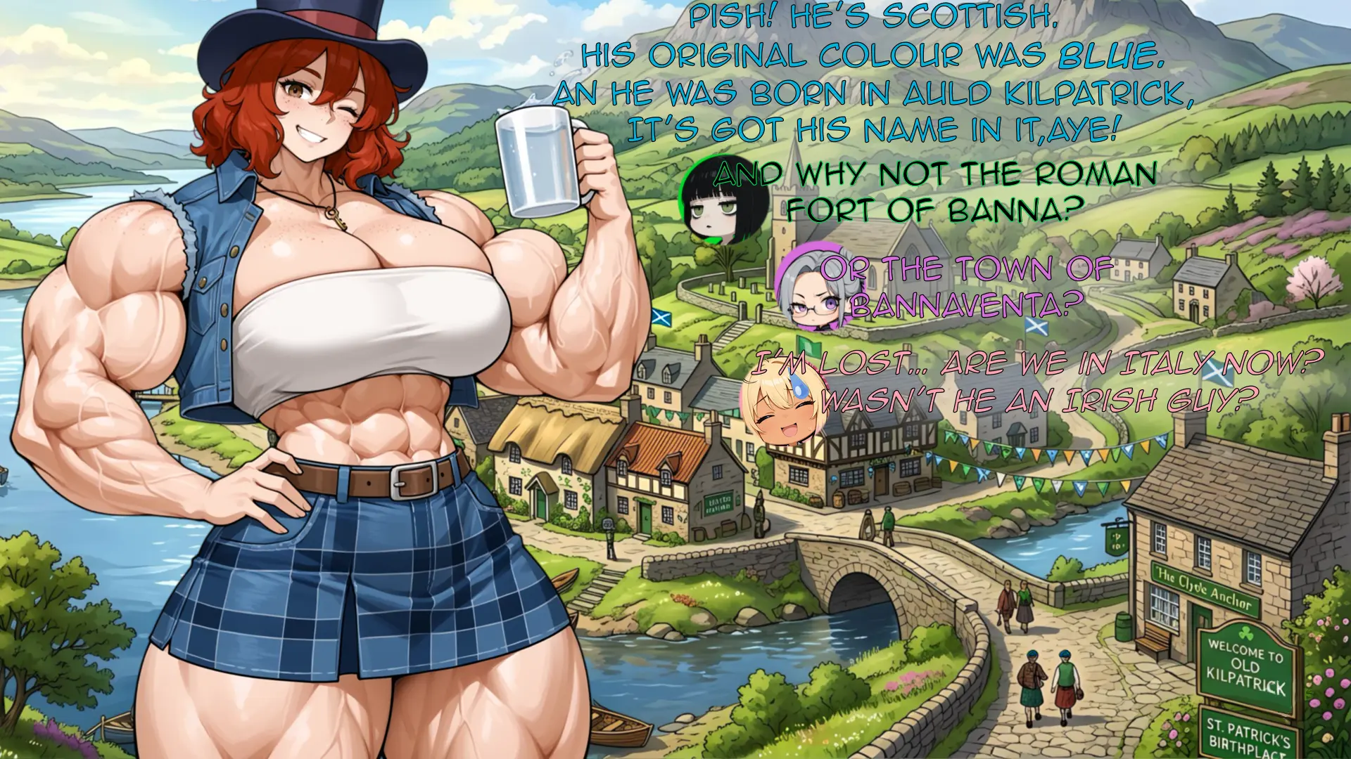 Amy: “Pish! He’s Scottish. His original colour was BLUE. An’ he was born in Auld Kilpatrick— it’s got his name right in it, aye!”