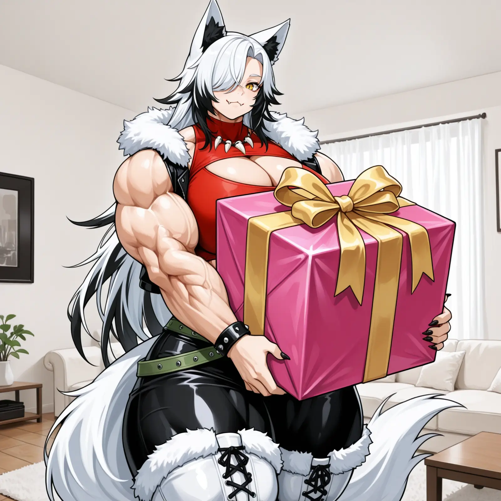 Hairstyle: Wolf cut with arched bangs