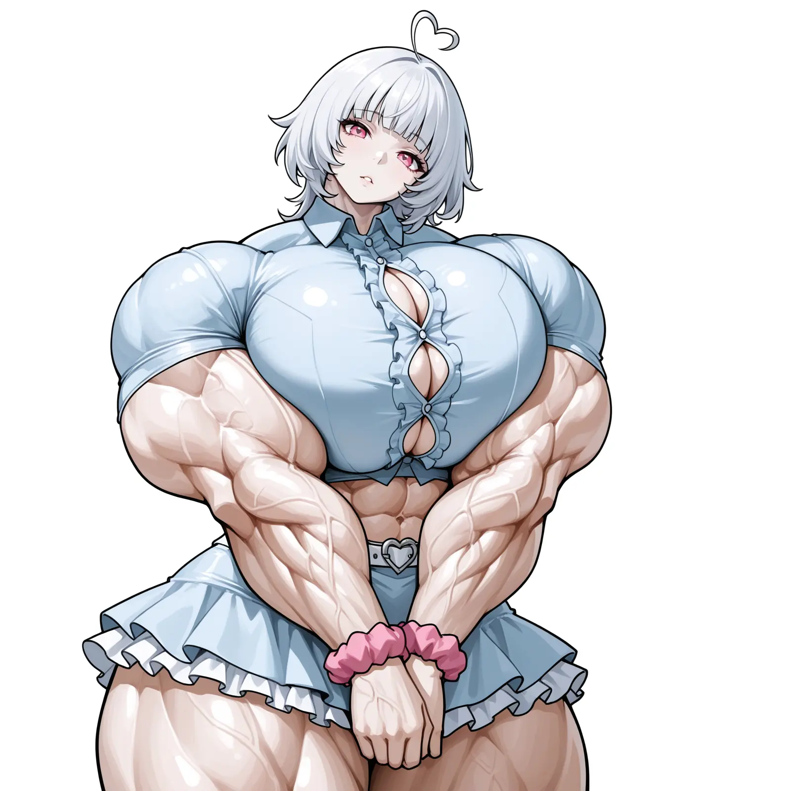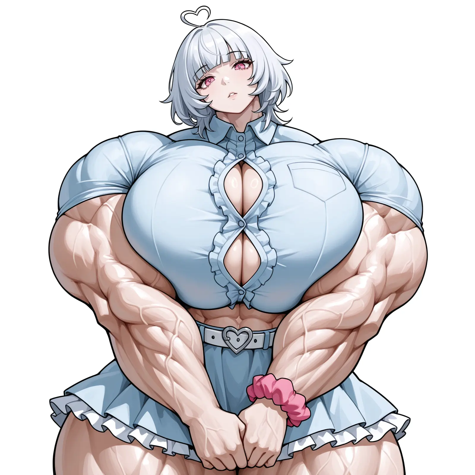 Yuki is Cassy’s daughter and the older of the two children. She has a minor melanin deficiency, resulting in white hair, fair skin and pink eyes. She has to be careful in the sun, but is more than healthy otherwise — eclipsing her mother on basically all metrics… taller, even more muscular and… more cushioning up front. 😉